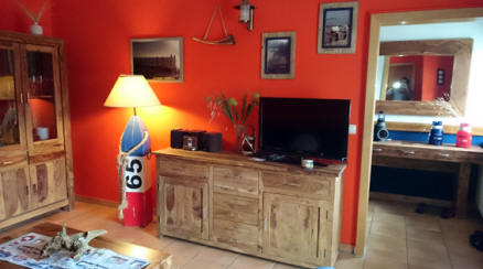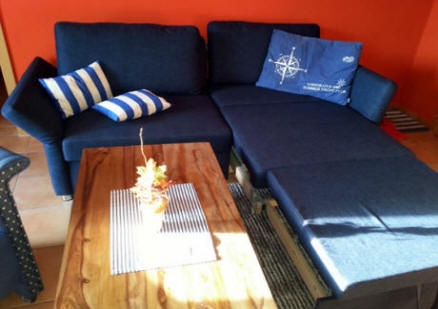 für bis zu 5 Personen. Auf 60 m² verteilt befinden sich ein Wohnzimmer, ein
